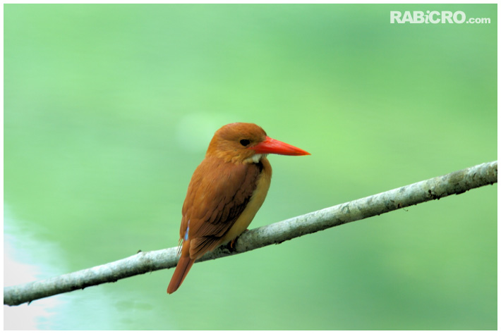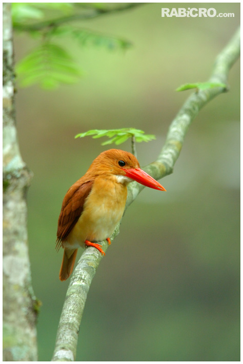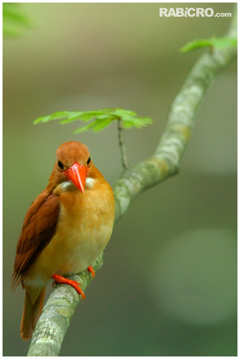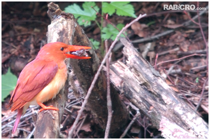 念願のキョロちゃん(アカショウビン)です。今シーズン、キョロちゃんを求めて遠征を繰り返していたのですが、ずっと振られっぱなしだったので感激もひとしおですね。苦労しながら何か硬いものを食べているように見えたのですが、少し遠いのと背景がごちゃごちゃしているのとでよく分かりませんでした。食べ終えてから数回ダイブした後どこかへ行っちゃいました。え?ダイブ?だってσ(^^)は留まりもの専門ですから!!その後昼間で待ちましたが、午前中はその1回きりでしたので午後から別のポイントに移ることにしました。 ポイントを移動して昼食のカップ麺をすすりながら今度は一人で待ちます。オシドリの雛が親の後にくっついて泳いでいるのを見ていたその時、目の前を何かが横切って目の前の枝に留まりました。ただ幹がじゃまをしてこちらから死角になっています。