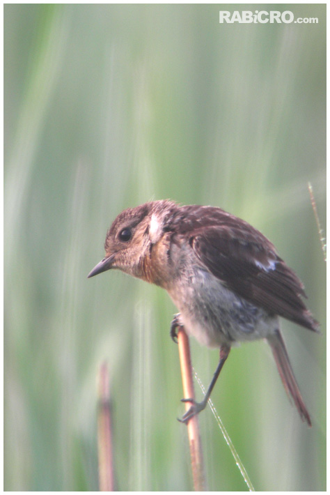 こちらはノビタキの若(成鳥の♀かも?)。何を見ているんでしょうねぇ。 ひとおとおりノビタ君に遊んでもらった後、帰りに新たな別のフィールドを捜しに徘徊します。窓を開けて車で流していると、「ヒン、カラララ...」!。車を急停車させ双眼鏡を片手に声のする方向を捜します。ついに20m向こうの木の枝に発見。コマドリの姿をようやく拝むことが出来ました。急いで車に戻ってヨンニッパ様を引きずり出し戻ってみると、枝にはもういません(;;)。あきらめきれずにしばらく待ちますが、声はするものの姿はそれっきりでした。それでもその日は家に帰ってからもずっと放心状態のσ(^^)。 【場 所】 栃木県日光市 戦場ヶ原 カワセミ王国 カワセミポイント C006 |