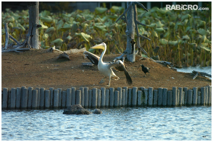 不忍池でペリカンの滑稽なしぐさを見て大笑い。カラスに追っかけられているんでしょうか?