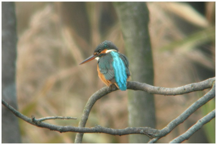 十分にぱせり君と遊んだ後、前から気になっていたことを試しに池にやってきました。というのも、いつもデジスコでは32xWWの接眼を使っているのですが、前回遠いカワセミを撮影していてふとズームの20-60xだったらどうなのかな?と気になっていたんです。ということで、いつもの遠いカワセミちゃん相手に早速テスト開始!