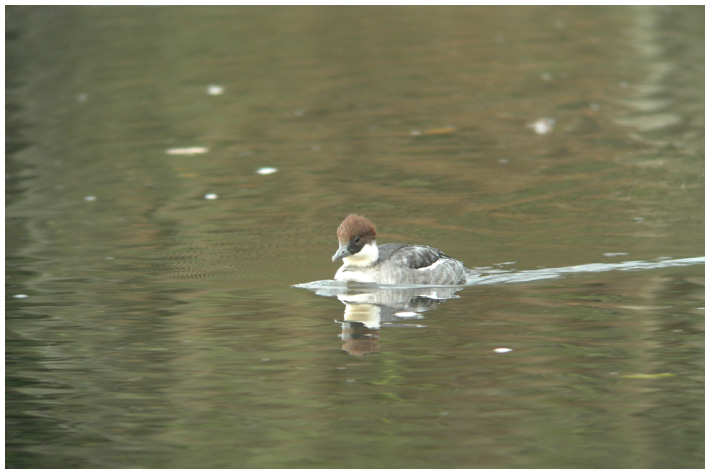 最後はこれ。ミコアイサの♀タイプ(で、いいんですよね)。最初カイツブリと思っていたのですけどなんだか違うなぁと思い撮影して自宅で図鑑とにらめっこでした。