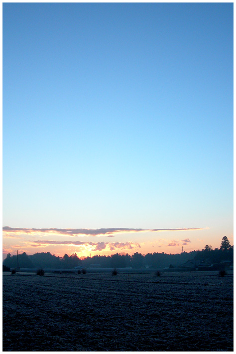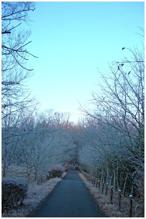 久しぶりの地元はとても寒く、車の温度計は−7℃でした。霜が木の枝に付いていたのでもう一枚。