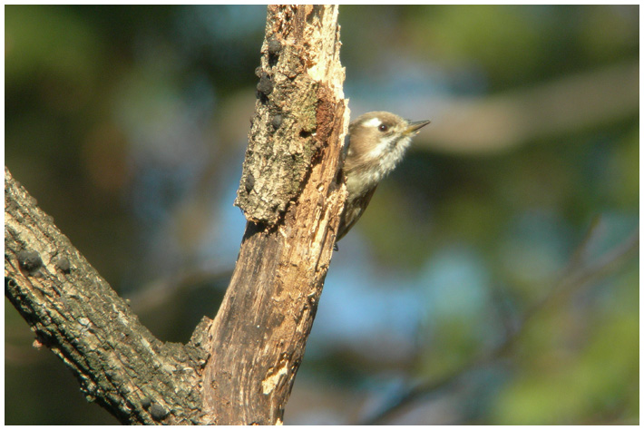 最初はちょっとひょうきんなコゲラどん。誰かさんの影響で、呼び名になぜか「どん」付きなのはご愛敬(^^。ドラミング中の写真は強烈に被写体ブレしていましたので、幹の影からひょいと顔を出した瞬間です。 今シーズンはまだ冬鳥との出会いが少ないなぁ 。 。 。なんてしゃべりながらまわっていると、いちごさんが見つけてくれました。