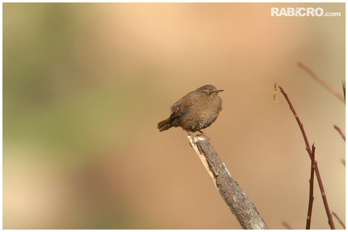 みそっちょ(ミソサザイ)は今日もがんばっています。背景の抜けたいいところに来てくれたのですが、折れた枝が 。 。 。