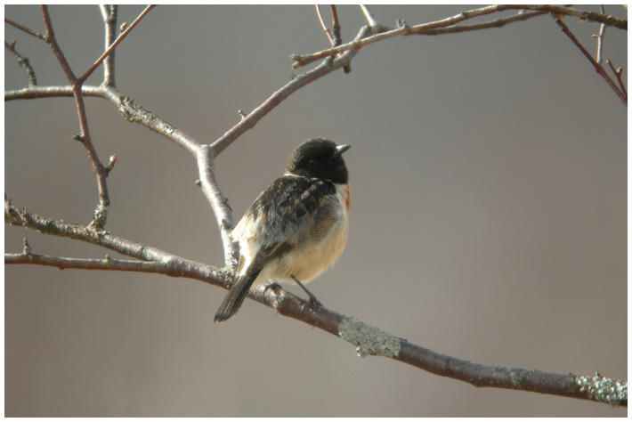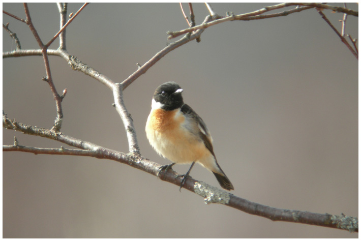 おぉノビタ君(ノビタキ♂)だ!こんなに寒いのにもう帰ってきてたのね。
