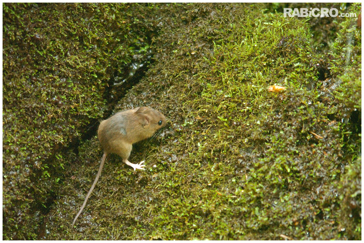 ネズミ(種類が分からん!)ですね。まだ薄暗い時にかさかさと出てきてコケを食べていたようです。とっても警戒心が強いようで、ミソサザイが近くを歩くとその物音にびっくりして隠れていました(^^。ヨンニッパ解放、ISO1600、1/20です。 色々とポイントを変え偵察したんですけど他にはめぼしい成果もなく、帰り際にいつものポイントへ。