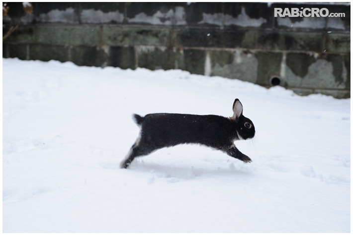 かなり埋もってますね(笑)。でも跳ねている姿がうさぎらしく、なんだか嬉しいのです♪ 横からも見てみましょう。